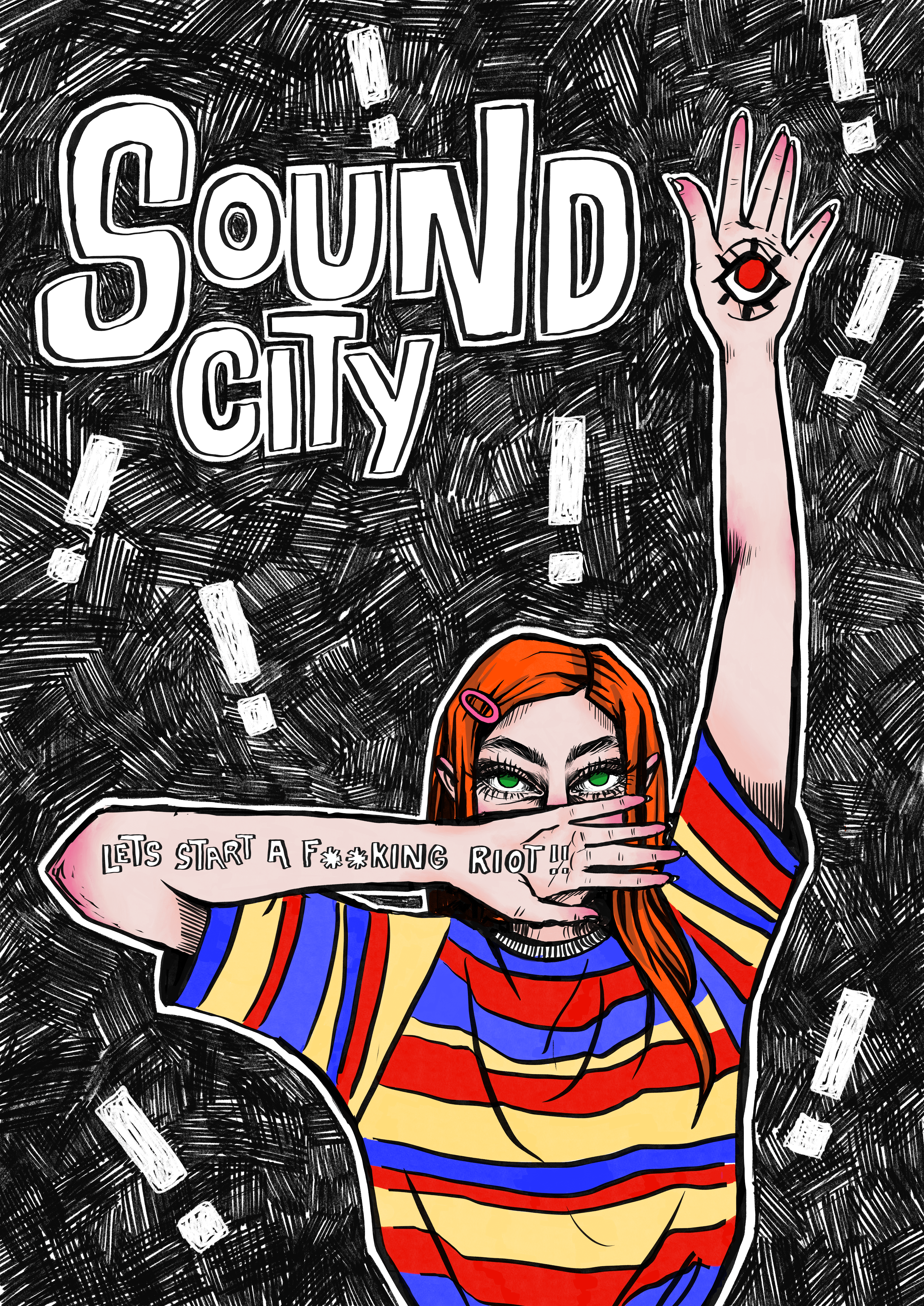 This poster was one of the pieces selected to be featured at the Sound City music event in liverpool. The poster will be presented at size A0. The brief stated that the poster should express the tag line “Lets Start a Fucking Riot!”.
